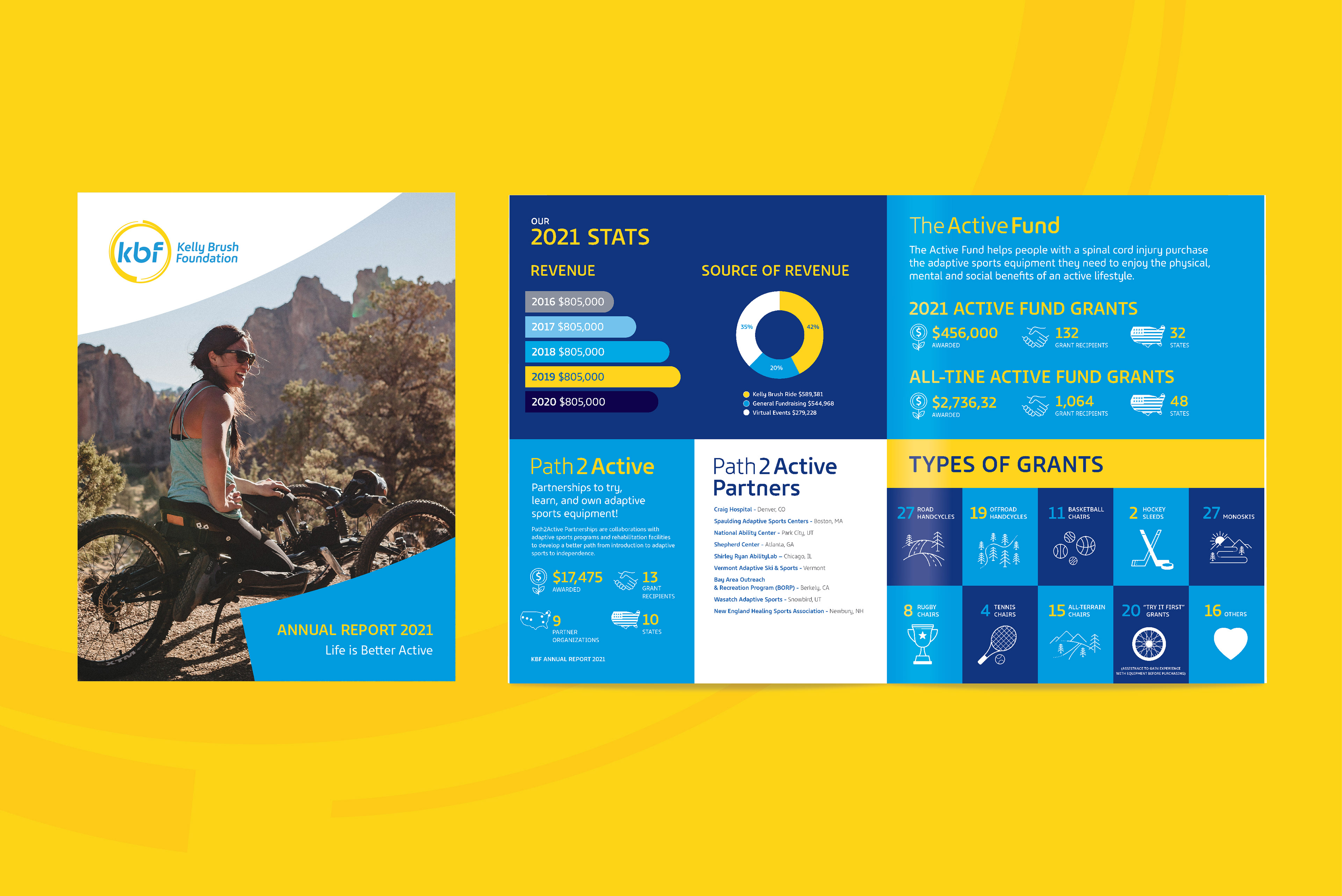 Today, the nonprofit founded by Kelly and her family work tirelessly to bring those same possibilities to everyone facing a life-changing spinal cord injury. But after more than a decade, the KBF brand was ready for a much-needed identity refresh that would fully personify the endless spirit, energy, and enthusiasm that drives this passionate team of doers. It was time for a new brand image as bold and exciting as the mission itself, powering them forward into the future.